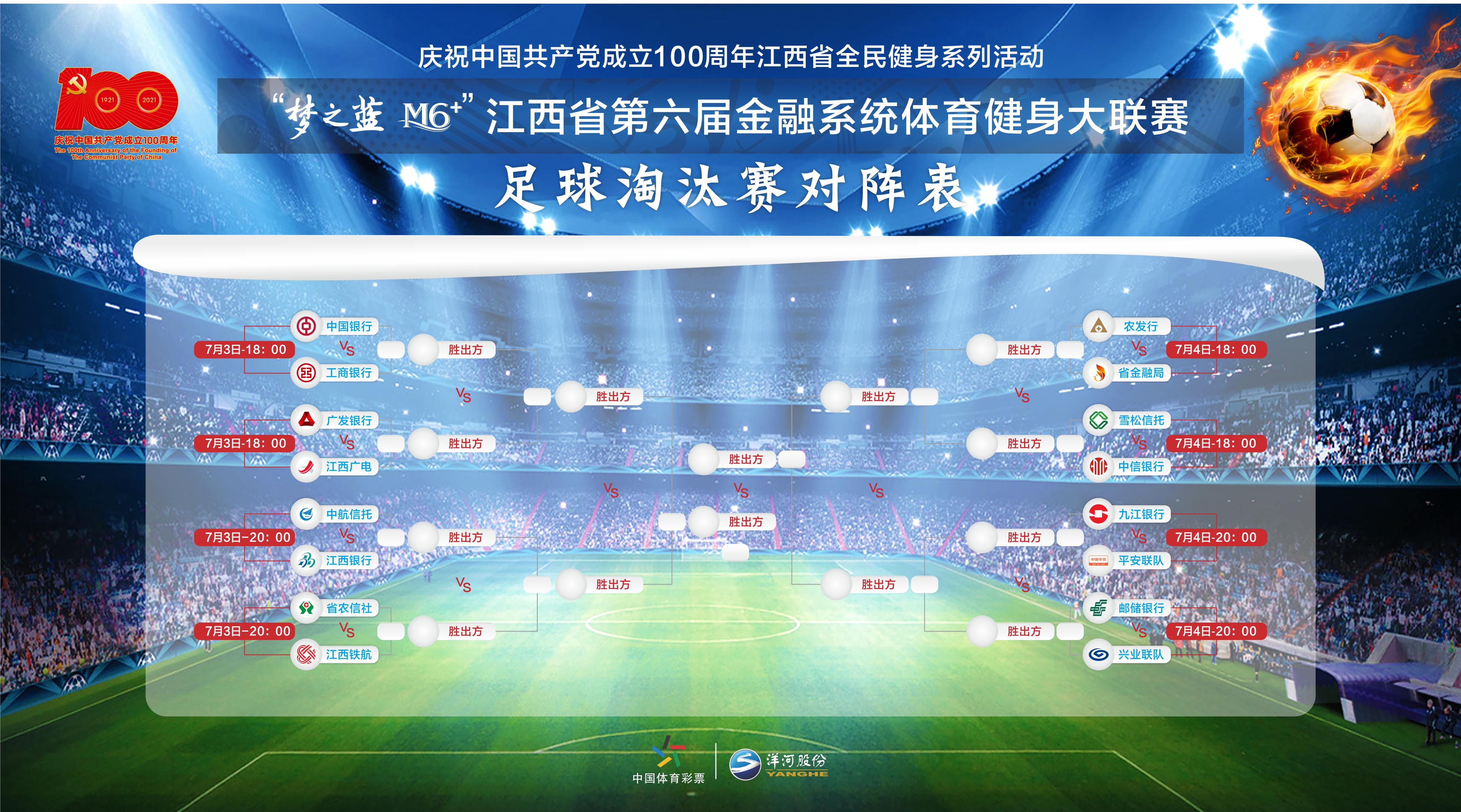 經(jīng)過多場鏖戰(zhàn),中國銀行、工商銀行、廣發(fā)銀行、江西廣電、中航信托、江西銀行、省農(nóng)信社、江西鐵航、農(nóng)發(fā)行、省金融局、雪松信托、中信銀行、九江銀行、平安聯(lián)隊(duì)、郵儲(chǔ)銀行、興業(yè)聯(lián)隊(duì)16只隊(duì)伍從小組賽脫穎而出,晉級16強(qiáng),八強(qiáng)爭奪賽將于7月3日上演。